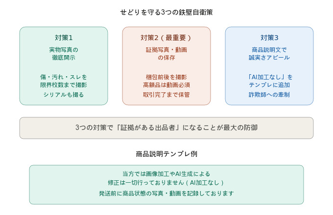 「この出品者はしっかり対策・記録している」と思わせることが、詐欺師を遠ざける効果的な方法です。