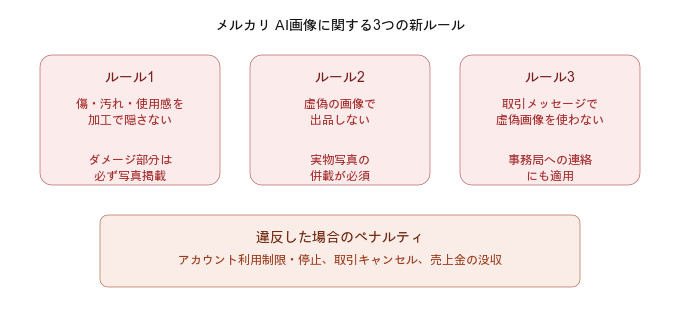 2026年3月25日に、メルカリが出品時や取引における「生成AI画像」や「画像加工アプリ」の使用に関する重大な注意喚起を公開しました。